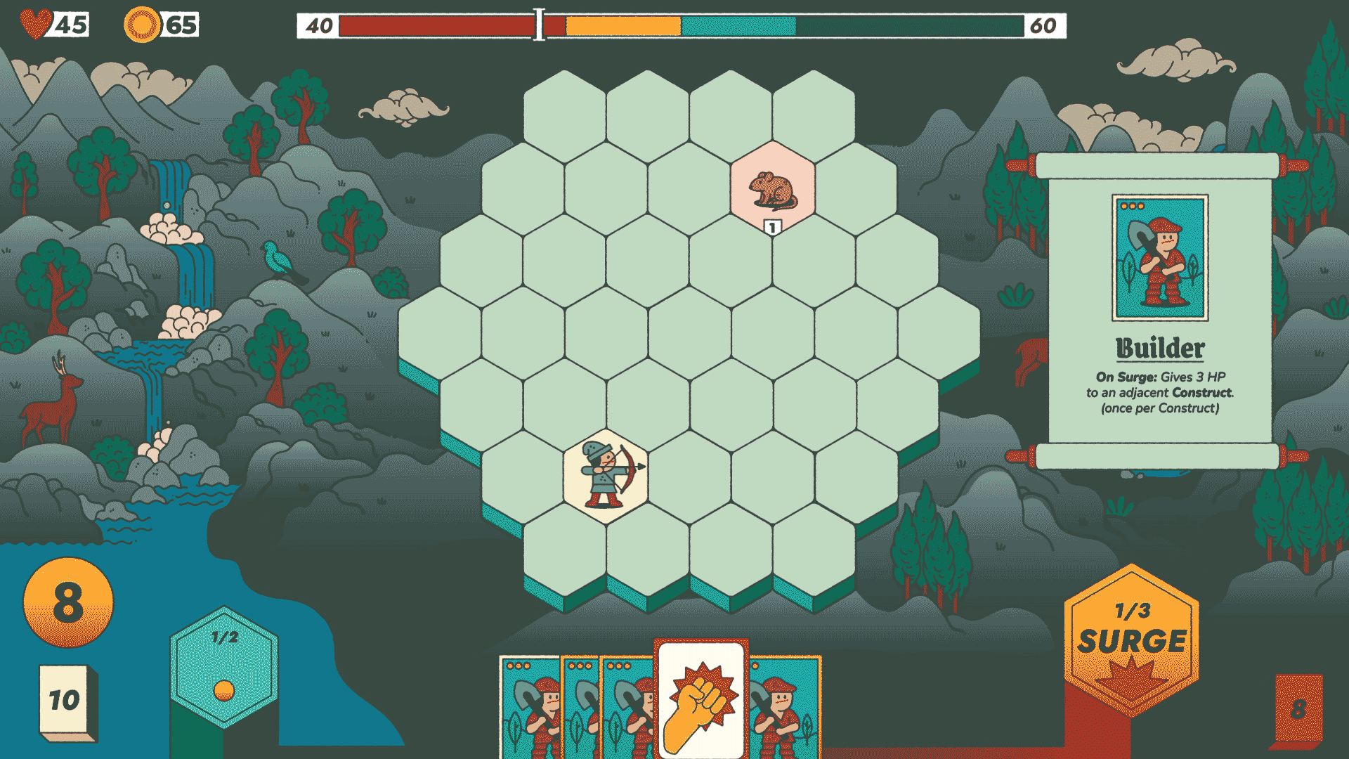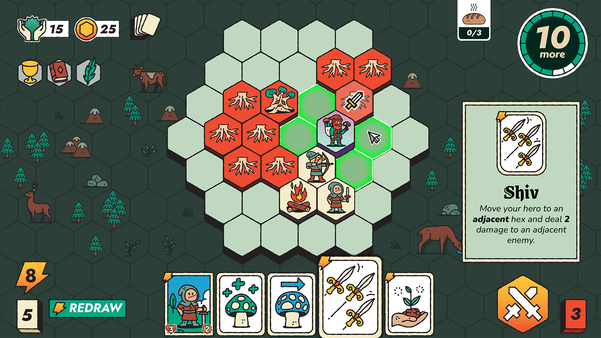 Free of the Land is a tactical roguelike deckbuilder. You play as an exile, leading a small band in search of a new home. The trouble is, every patch of land is already claimed by monsters, critters, or a very, very angry forest. You win by building Presence through the Pledges you make and surviving until the land accepts you.