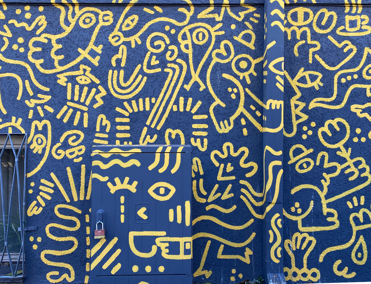 Mural includes various of expressive characters which is all about getting energised from having too much coffee. Bright yellow on dark grey helped us to reflect the positive vibes and characteristic of the coffe shop. We prefered line art doodles to emphasise the story and to combine our artistic styles. We also had so much delicious coffee while working.